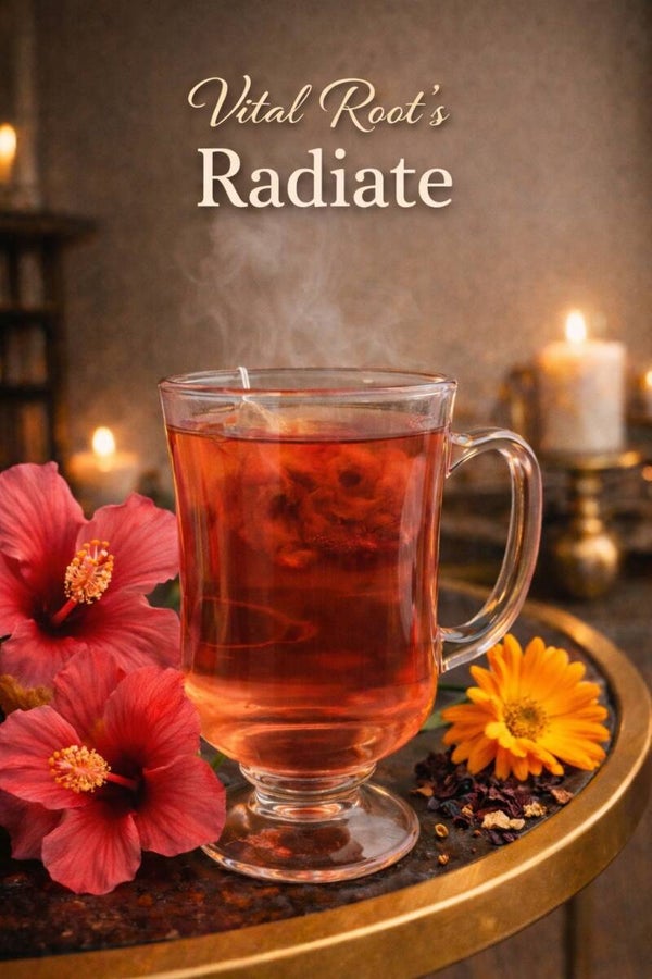 RADIATE is a vibrant loose-leaf herbal infusion crafted with tropical fruits and botanicals to support hydration, skin clarity, and a healthy, natural glow from within.
