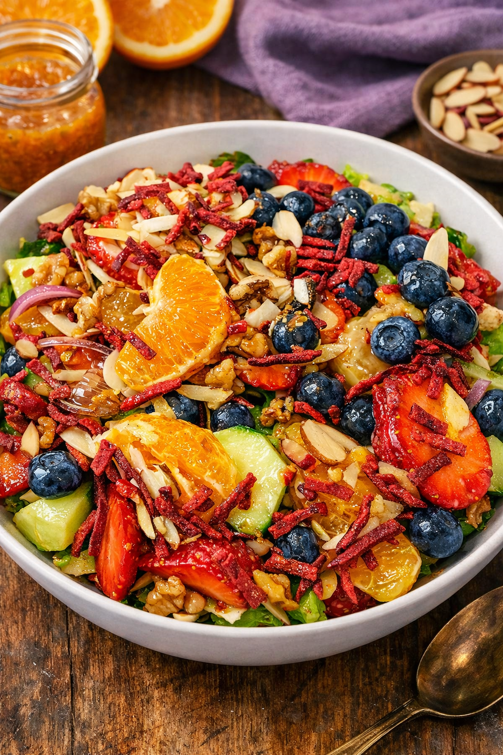 A bright, oil-free citrus and berry salad that delivers fresh crunch, natural sweetness, and radiant nourishment in every bite.